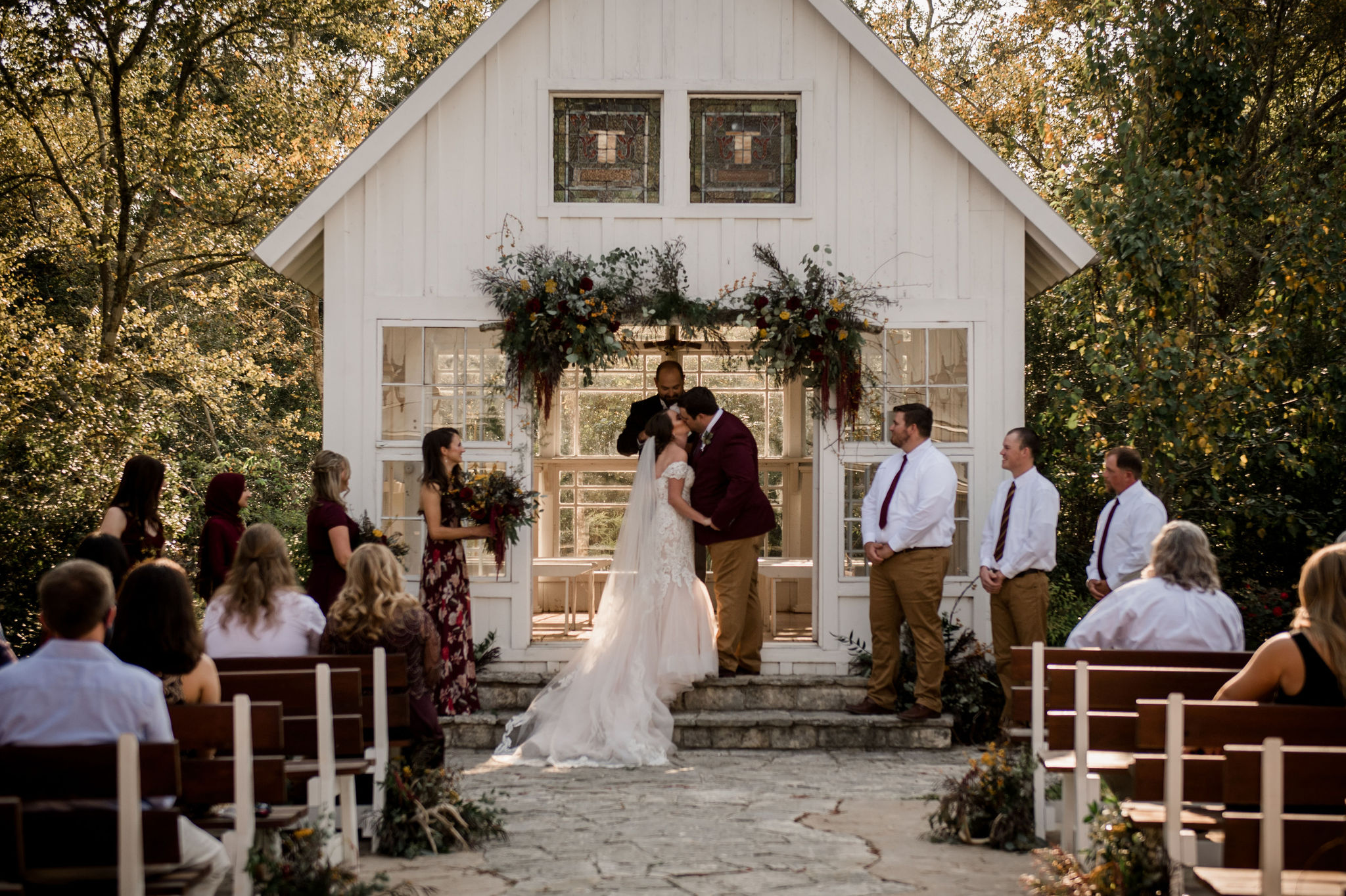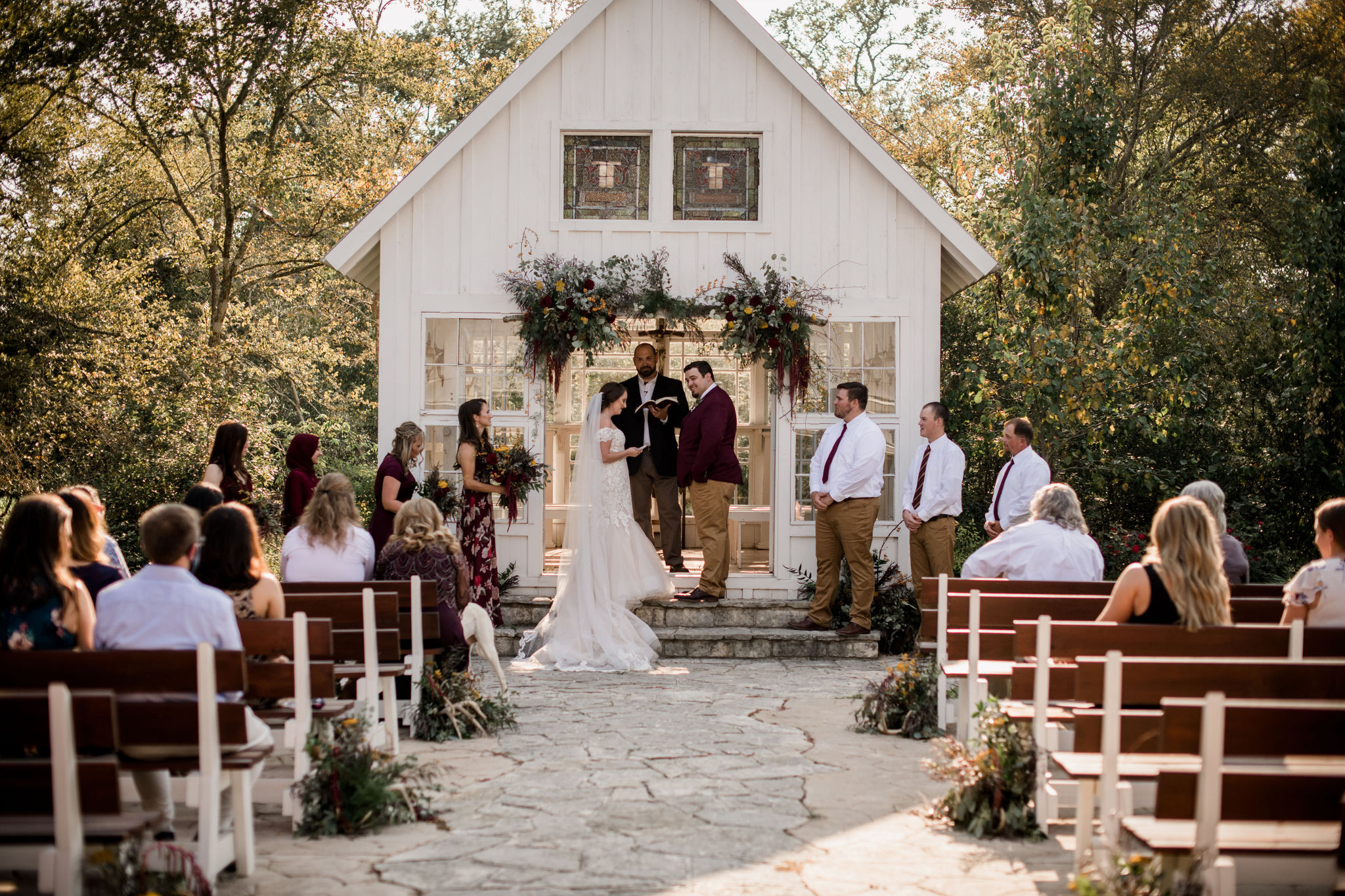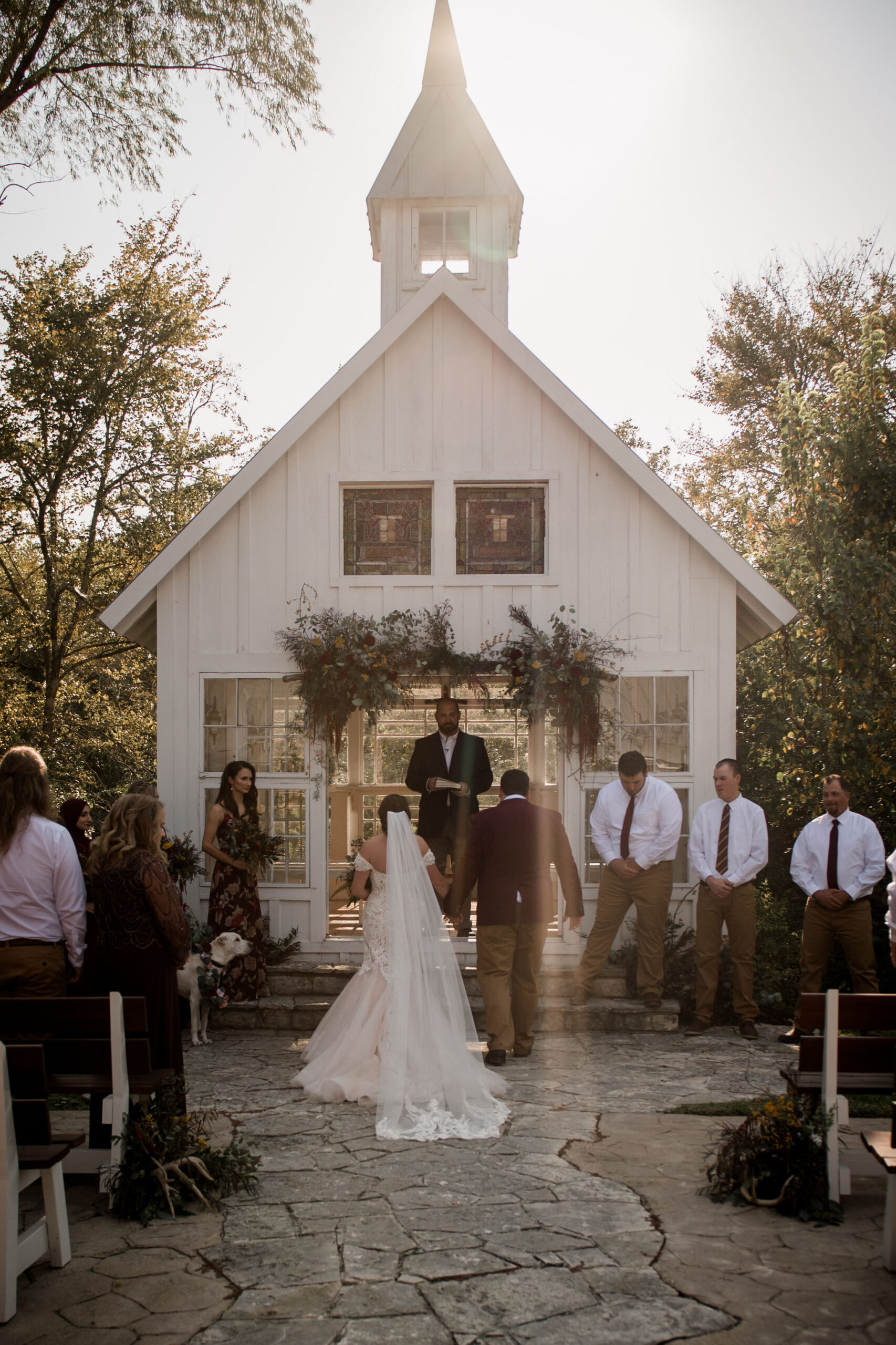 Fall weddings at 7F Lodge in College Station, Texas just hit different. This wedding was one of my all time favorite weddings at this venue. As a preferred vendor at 7F Lodge, I work there a lot. I’m familiar with this venue. I know when the light in each location will be just right. I also know that 2 hours before sunset is the best time for your ceremony. With your guests facing the sun, this timing helps maximize the shade for the guests as well as provide the best light for your ceremony and pictures directly after. I know how the sun hits the windows in the back of the chapel at just the right moment for your family photos.